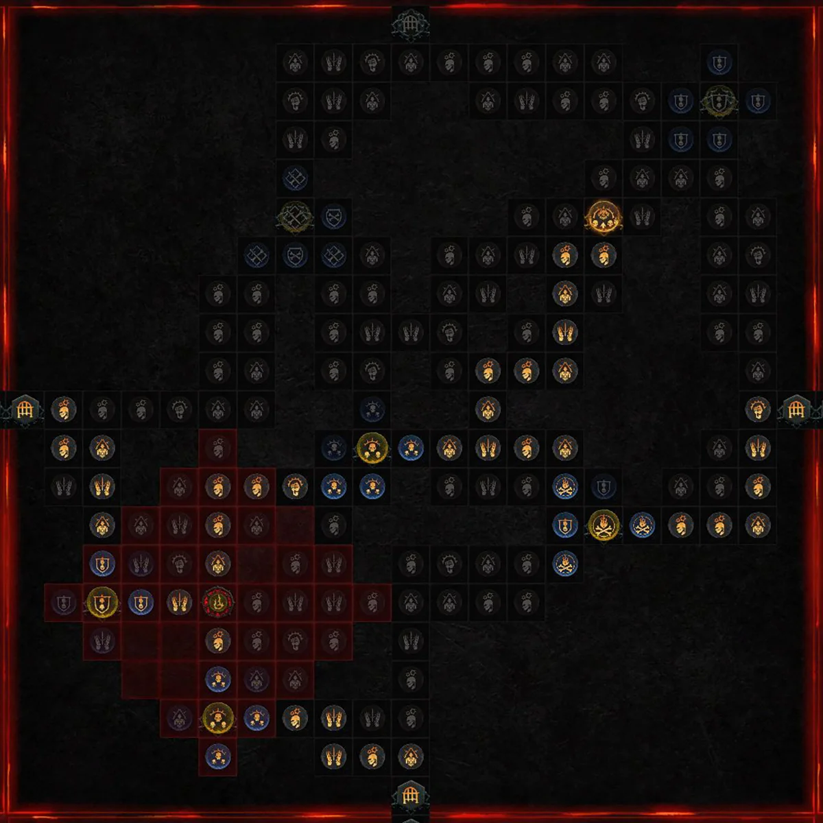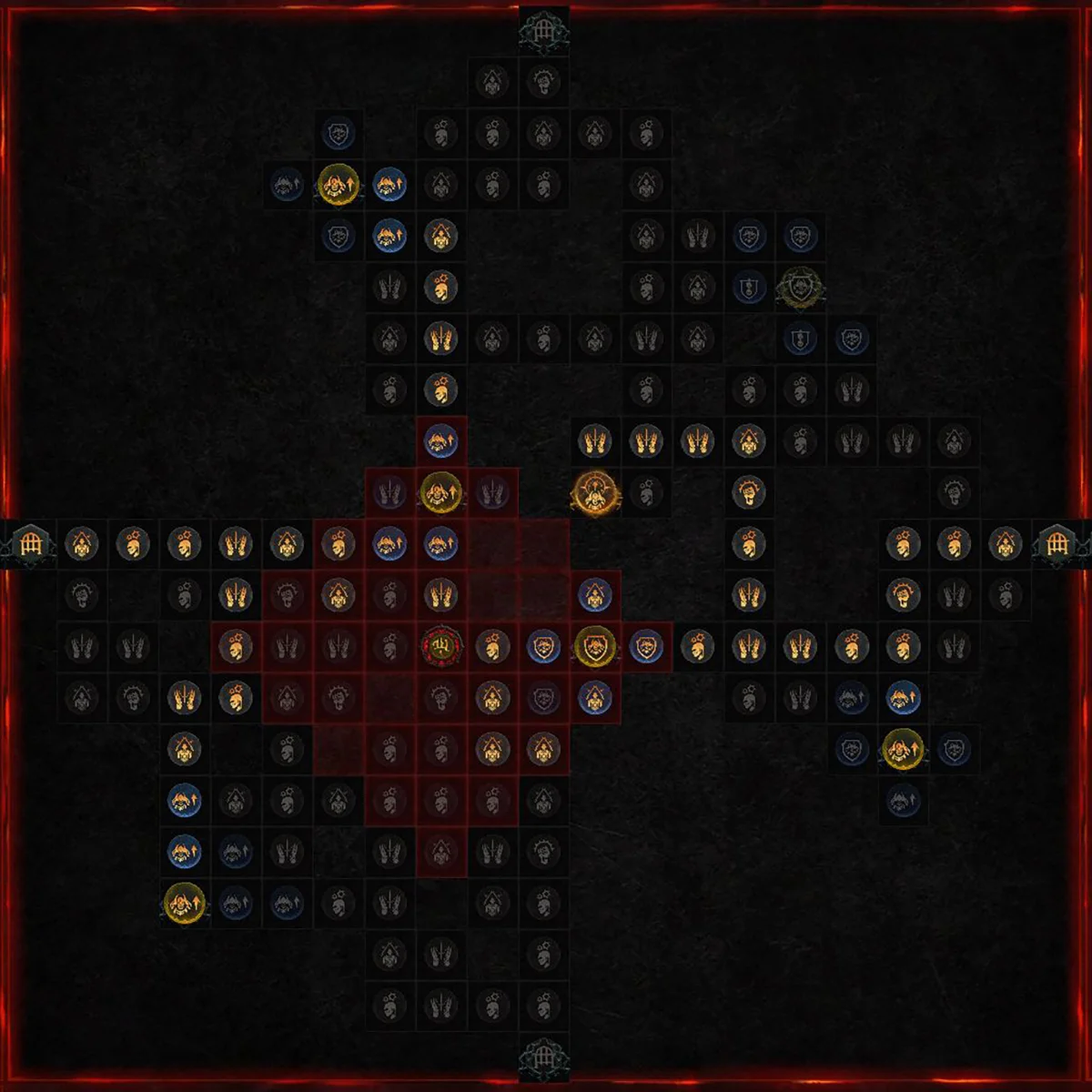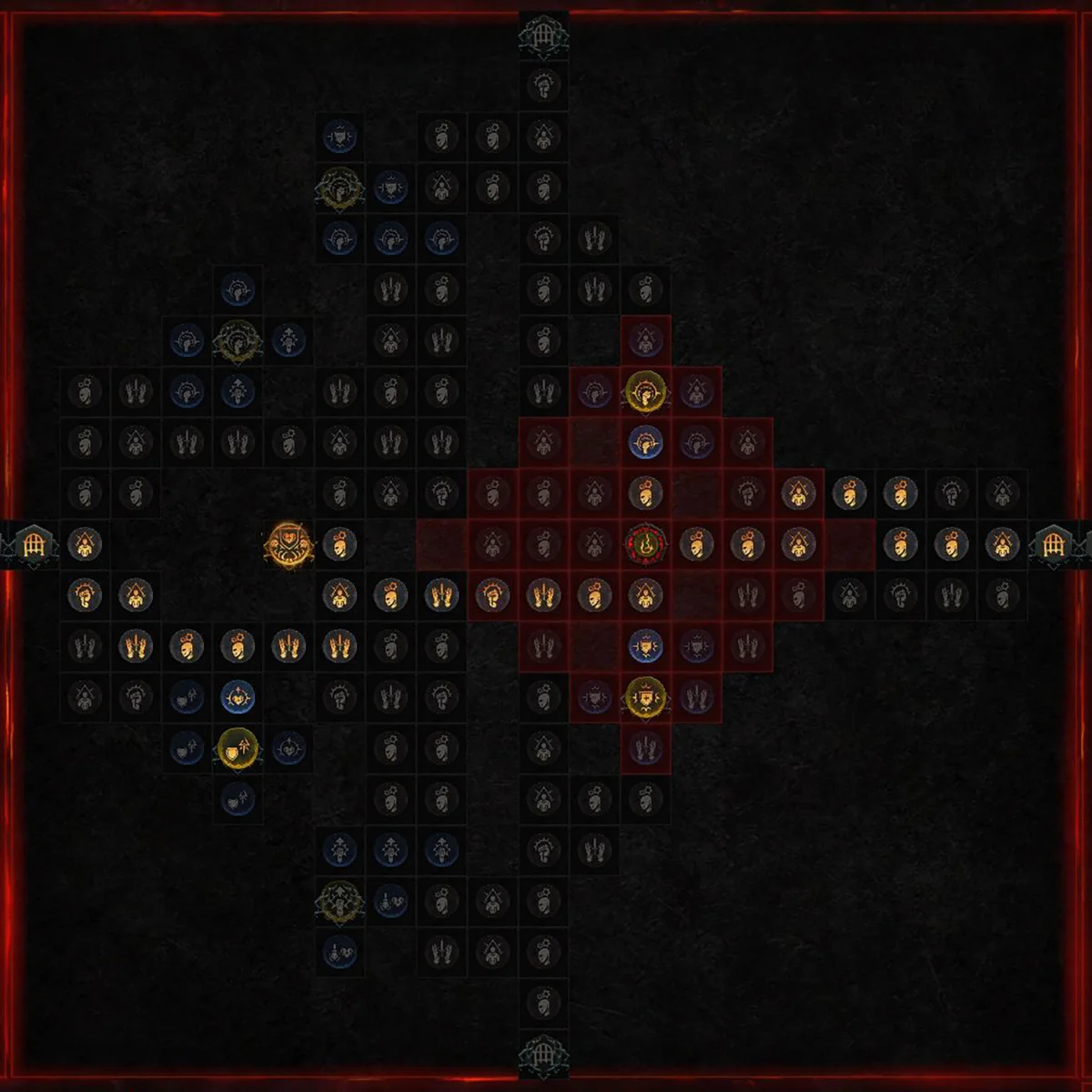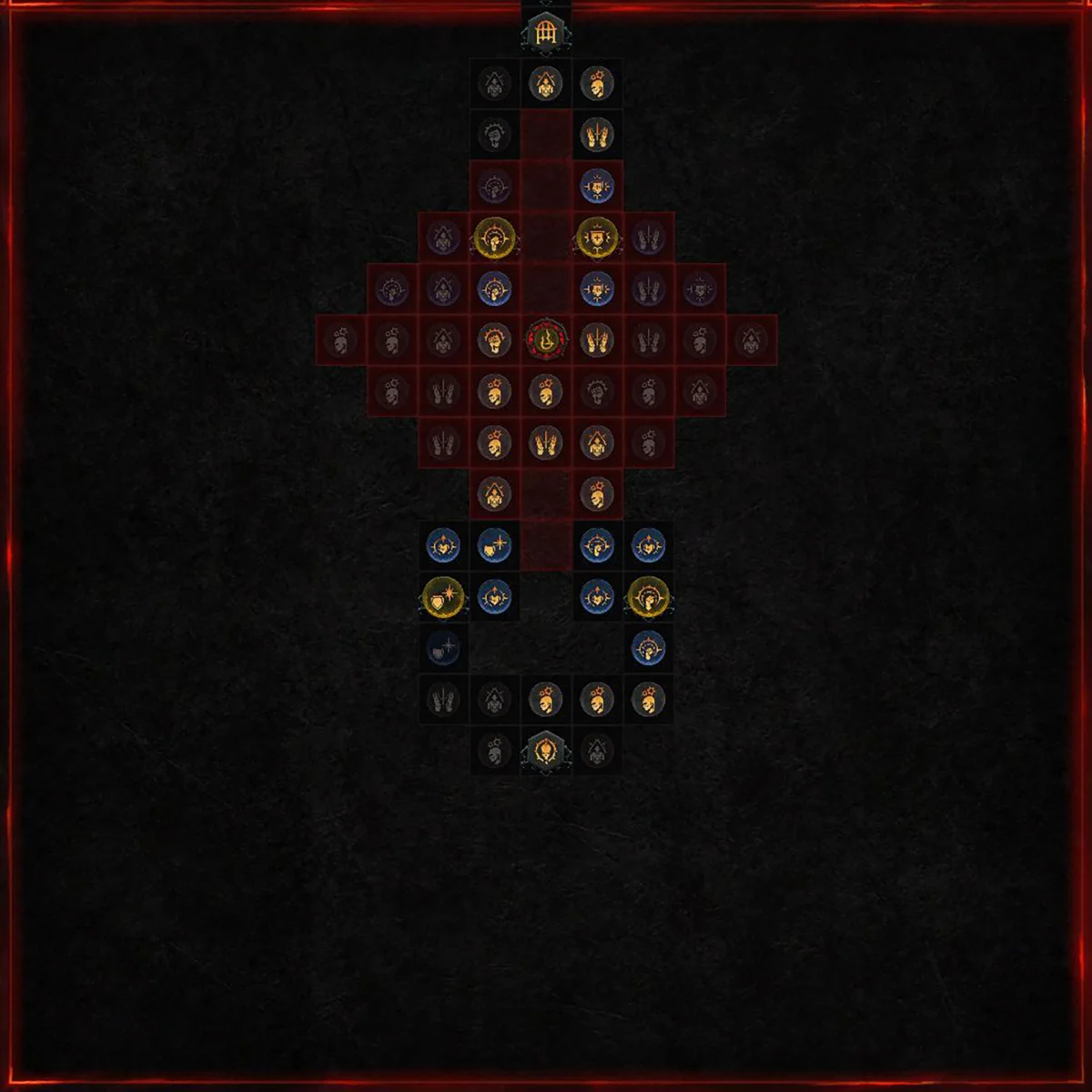 | Seltene Glyphe "Totenbeleber" Paragonknoten in Reichweite erhalten einen Bonus von +(X)% auf ihre Modifikatoren für Dienerschaden und Schadensreduktion. Zusätzlicher Bonus: Jedes Mal, wenn deine Diener einem Gegner Schaden zufügen, erleidet dieser Gegner (X) Sek. lang (X)% mehr Schaden durch dich und deine Diener, bis maximal (X)%. |